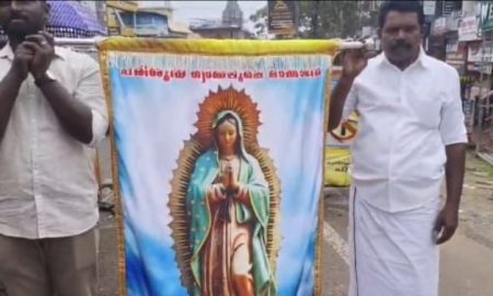 പാലാ: പരിശുദ്ധിയുടെ പരിമളം തൂവിയ അന്തരീക്ഷത്തിൽ പാലാ ഗാഢലൂപ്പെ പള്ളിയിൽ ഗാഢലൂപ്പെ മാതാവിൻ്റെ തിരുന്നാളിന് കൊടി ഉയർന്നു. നൂറുകണക്കിന് മരിയ ഭക്തരുടെ കണ്ഠങ്ങളിൽ നിന്നും മരിയ സ്തുതി മന്ത്രങ്ങൾ ഉരുവിട്ട...