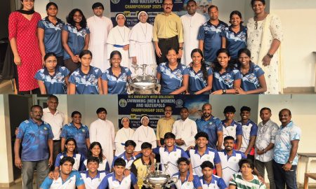 പാലാ സെന്റ് തോമസ് കോളേജിന്റെ ഇൻഡിഗ്രേറ്റഡ് സ്പോർട്സ് കോംപ്ലക്സിൽ വെച്ച് നടന്ന എം ജി സർവകലാശാല സിമ്മിംഗ് ചാമ്പ്യൻഷിപ്പിൽ പുരുഷ വിഭാഗത്തിൽ പാലാ സെന്റ് തോമസ് കോളേജ് 124 പോയിന്റ്...