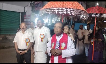 പാലാ :അലങ്കരിച്ച രഥത്തിലെ പരിശുദ്ധ ബൈബിളിന് പിന്നിലായി ആയിരക്കണക്കിന് മരിയ ഭക്തർ അണിനിരന്ന ളാലം പഴയ പള്ളിയിലെ മരിയൻ റാലി ശ്രദ്ധേയമായി.പാലാ അമലോത്ഭവ ജൂബിലി തിരുന്നാളിനെ അനുസ്മരിപ്പിക്കുന്ന രീതിയിൽ പട്ടണ...