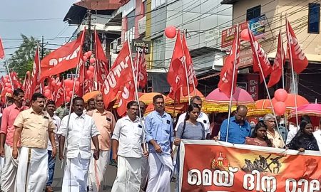 പാലാ: ചെണ്ടമേളത്തിന്റെയും മുടിയാട്ടത്തിന്റയും അകമ്പടിയോടെ പാലായിൽ എ ഐ റ്റി യു സി മണ്ഡലം കമ്മറ്റിയുടെ നേതൃത്വത്തിൽ നൂറു കണക്കിന് തൊഴിലാളികൾ പങ്കെടുത്ത മെയ് ദിന റാലി നടന്നു. വർണ്ണ...