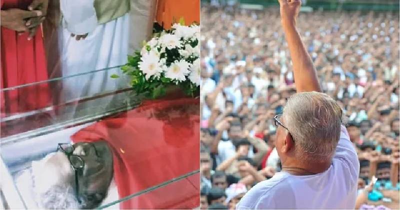 വിഎസിൻ്റെ മൃതദേഹം പൊതുദർശനം സംസ്ഥാന സെക്രട്ടേറിയേറ്റിലെ ദർബാർ ഹാളിൽ പുരോഗമിക്കുകയാണ്. നൂറ് കണക്കിനാളുകൾ ഇപ്പോഴും വിഎസിനെ കാണാൻ വരിനിൽക്കുകയാണ്. എങ്കിലും ഉച്ചയ്ക്ക് രണ്ട് മണിയോടെ മൃതദേഹവും വഹിച്ചുകൊണ്ടുള്ള വിലാപയാത്ര തിരുവനന്തപുരത്ത് നിന്ന് ആലപ്പുഴയിലേക്ക് പുറപ്പെടുമെന്ന് ഔദ്യോഗികമായി അറിയിച്ചിട്ടുണ്ട്.