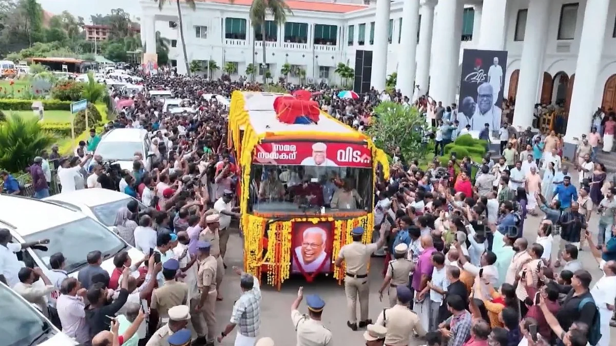 ദര്ബാര് ഹാളില് അഞ്ചു മണിക്കൂറോളം നീണ്ടു നിന്ന പൊതുദര്ശനത്തില് കെപിസിസി പ്രസിഡന്റ് സണ്ണി ജോസഫ്, ബിജെപി സംസ്ഥാന അധ്യക്ഷന് രാജീവ് ചന്ദ്രശേഖര്, രമേശ് ചെന്നിത്തല തുടങ്ങി വിവിധ രാഷ്ട്രീയ-സാമൂഹിക-മത നേതാക്കള് അന്തിമോപചാരം അര്പ്പിക്കാനെത്തിയിരുന്നു.