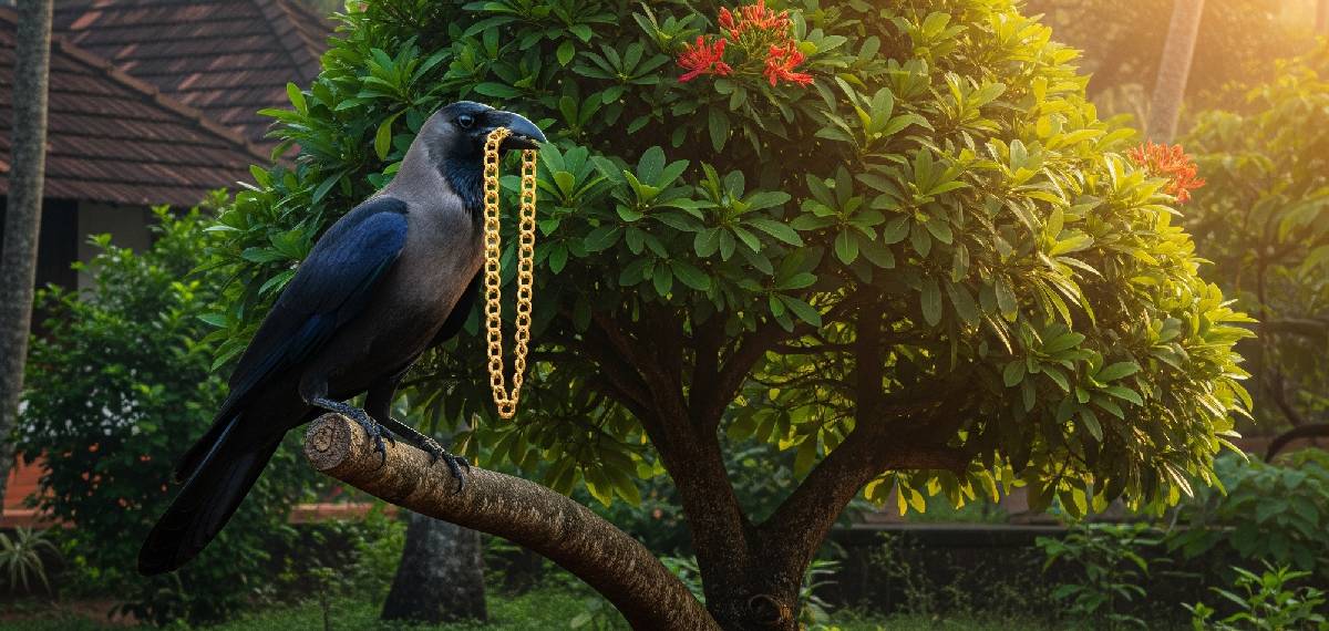 രാവിലെ അംഗണ്വാടി വൃത്തിയാക്കുമ്പോള് മാല ചൂലില് ഉടക്കിയിരുന്നു. ഇതിനെ തുടര്ന്ന് കോണിപ്പടിയില് മാല ഊരിവയ്ക്കുകയായിരുന്നു. മാലയ്ക്കൊപ്പം ഒരു ഭക്ഷണപ്പൊതിയും ഉണ്ടായിരുന്നു. ഭക്ഷണം കൊത്തിയെടുക്കാന് വന്ന കാക്ക പക്ഷെ തിരികെ പറന്നത് സ്വര്ണ മാലയുമായി ആയിരുന്നു.