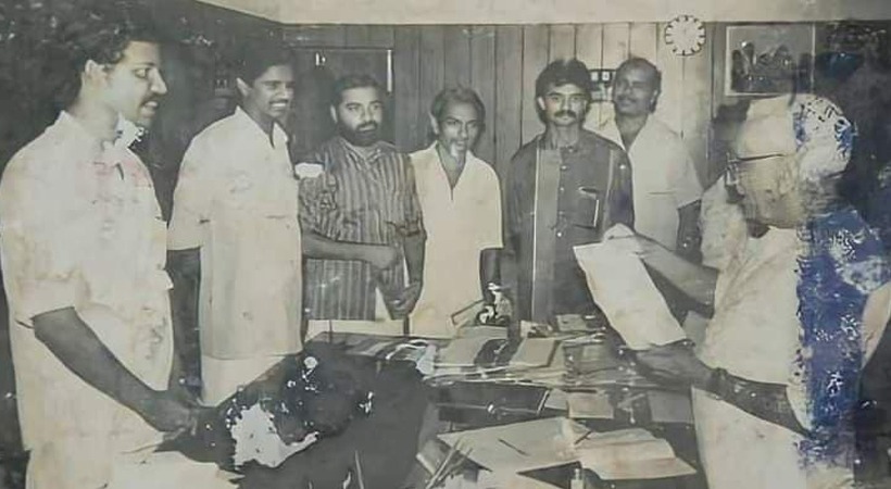 ഒരു പഴയ ചിത്രമാണ്. ഇത്തരം ചിത്രങ്ങൾ ഒന്നും എൻ്റെ പക്കൽ ഇല്ല. ഡിവൈഎഫ്ഐ യിൽ പ്രവർത്തിക്കുമ്പോൾ സഹപ്രവർത്തകനായിരുന്ന ഒരു സഖാവ് ഇന്ന് അയച്ചു തന്നതാണ്.1991ൽ സംസ്ഥാനത്ത് വലിയ നാശം വിതച്ച പ്രളയകെടുതി മൂലം ദുരിതമനുഭവിക്കുന്ന ജനങ്ങളെ സഹായിക്കുവാൻ DYFI സംസ്ഥാനത്തു നിന്ന് ഹുണ്ടികപിരിവ് വഴി ശേഖരിച്ച പണം മുഖ്യമന്ത്രിയുടെ ദുരിതാശ്വാസനിധിയിലേക്ക് കൈമാറുന്ന ചടങ്ങാണിത്. സെക്രട്ടറിയറ്റിലെ ഓഫീസിൽ വച്ച് അന്നത്തെ മുഖ്യമന്ത്രി കെ കരുണാകരനെയാണ് ഏതാനും ലക്ഷങ്ങൾ വരുന്ന തുക ഏൽപ്പിച്ചത്.