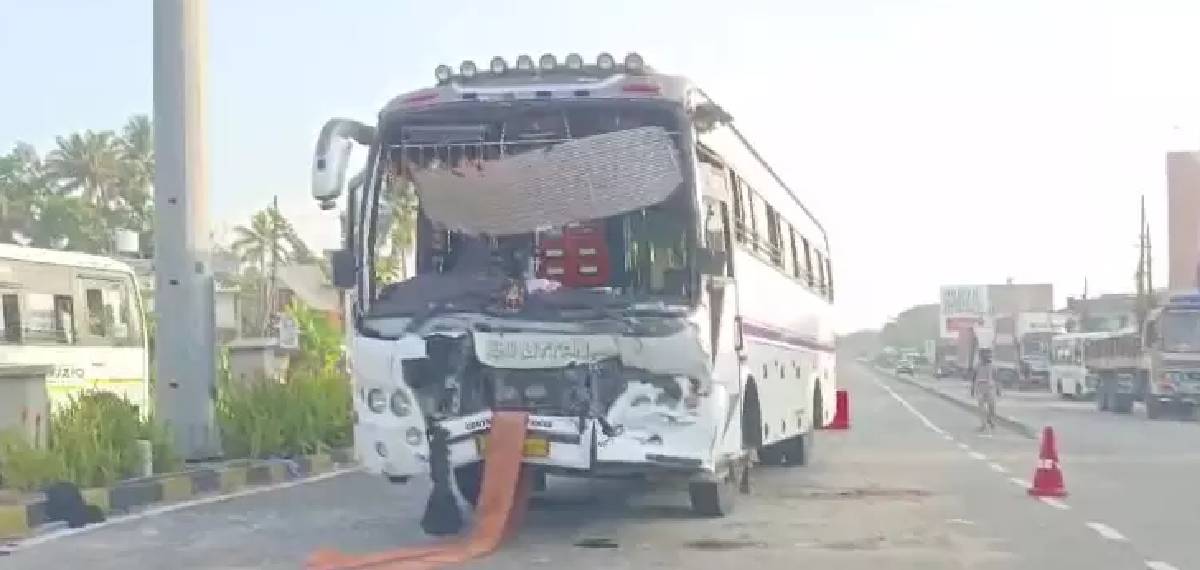 ബസ് കണ്ടെയ്നർ ലോറിക്ക് പിന്നിൽ ഇടിച്ച് കയറിയാണ് അപകടം സംഭവിച്ചത്. മലപ്പുറത്ത് പരിപാടിക്ക് പോയി തിരിച്ച് വന്ന ബസ് ഇന്ന് പുലർച്ചെ 2:50 ഓടെയായിരുന്നു അപകടത്തിൽപ്പെട്ടത്.