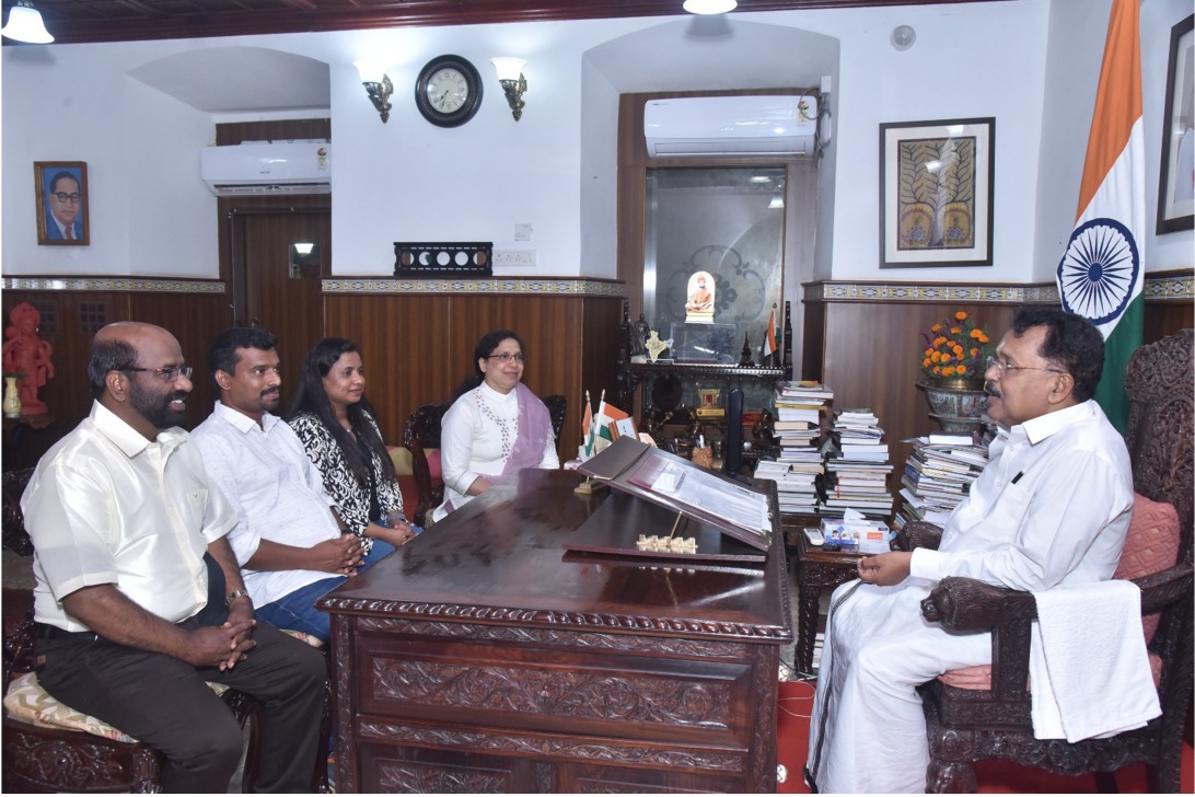 ഗോവയിലേക്ക് പോകുന്നതിനു മുമ്പ് ഗവർണർ അഡ്വ. പി. എസ്. ശ്രീധരൻപിള്ളയെ ബന്ധപ്പെട്ടിരുന്നു. നിശ്ചയമായും നമുക്ക് മീറ്റ് ചെയ്യാം എന്ന് അദ്ദേഹംപറഞ്ഞു. പല കേന്ദ്രമന്ത്രിമാരെയും ഞാൻ സന്ദർശിച്ചിട്ടുണ്ട് എങ്കിലും ഒരു രാജഭവൻ സന്ദർശിക്കുന്നത് ആദ്യമായിട്ടാണ്.