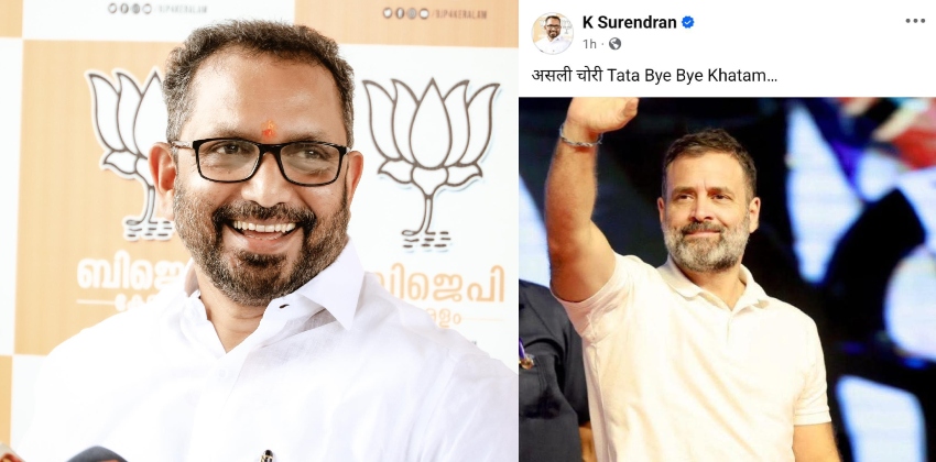 ഫേസ്ബുക്ക് പോസ്റ്റിലൂടെയാണ് വിമർശനം. യഥാർത്ഥ മോഷ്ടാവ്.. ടാറ്റാ ബൈ ബൈ ഖതം… എന്നായിരുന്നു കെ സുരേന്ദ്രൻ രാഹുൽ ഗാന്ധിയുടെ ചിത്രം പങ്കുവച്ച് കുറിച്ചത്.