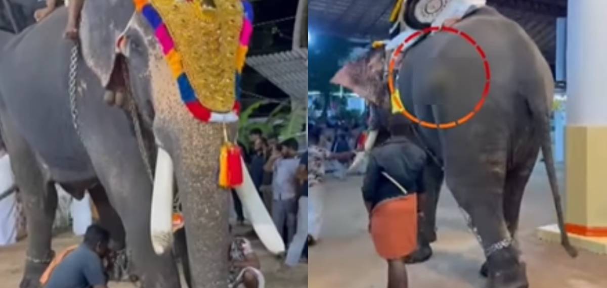 കണ്ണൂരിൽ പൊട്ടിയൊലിക്കുന്ന മുറിവുമായി ആനയെ എഴുന്നള്ളിപ്പിനിറക്കി