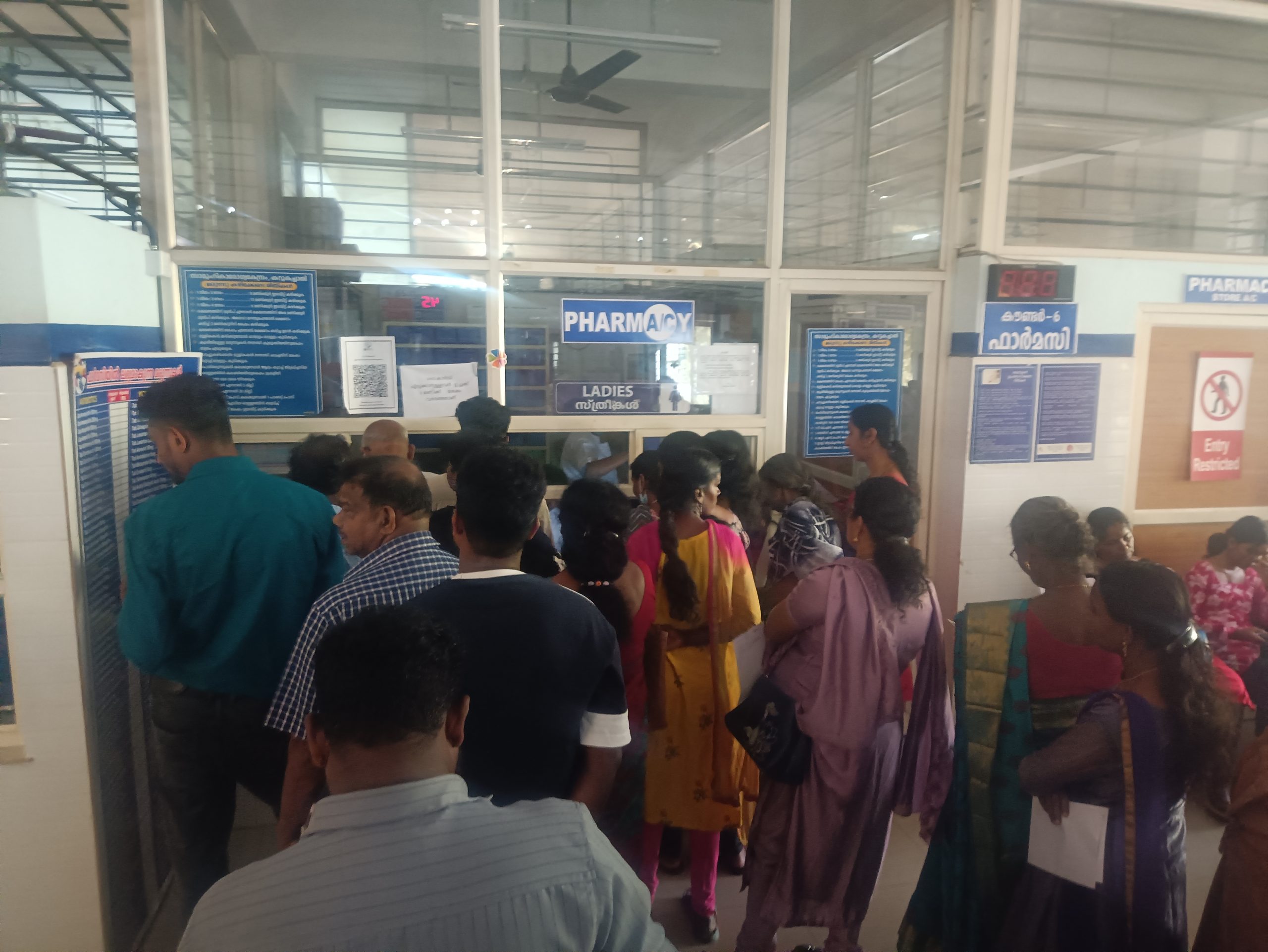 പനിയുൾപ്പടെ നിരവധി ആരോഗ്യ പ്രശ്നങ്ങൾ ഉള്ളവരാണ് ആശുപത്രിയിൽ ഏറെയും. ഇവർ ഏറെ നേരം നിന്ന് മരുന്ന് വാങ്ങി പോകേണ്ട അവസ്ഥയാണ് നിലവിൽ. ഒരു ഫർമസിസ്റ്റ് മാത്രമാണ് ആശുപത്രിയിൽ ഉള്ളത്. ഇതോടെ ക്യൂ മണിക്കൂറുകളിലേക്ക് നീളുന്നു. വിഷയത്തിൽ അടിയന്തിര ഇടപെടൽ വേണമെന്നാണ് രോഗികളുടെ ആവശ്യം.