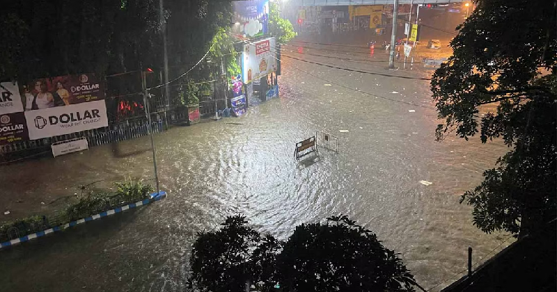 അർധരാത്രി കഴിഞ്ഞപ്പോൾ ആരംഭിച്ച മഴയിൽ റോഡുകൾ വെള്ളത്തിനടിയിൽ ആവുകയും നഗരത്തിലെ നിരവധി വീടുകളിലും വ്യാപാര സ്ഥാപനങ്ങളിലും വെള്ളം കയറുകയും ചെയ്തു. മഴക്കെടുതി മൂലം നഗരത്തിൽ അഞ്ചു പേർ മരിച്ചു. ദക്ഷിണ ബംഗാൾ ജില്ലകളിലും കനത്ത മഴയ്ക്ക് സാധ്യത ഉണ്ടെന്ന് കേന്ദ്ര കാലാവസ്ഥ വകുപ്പ് അറിയിച്ചു.