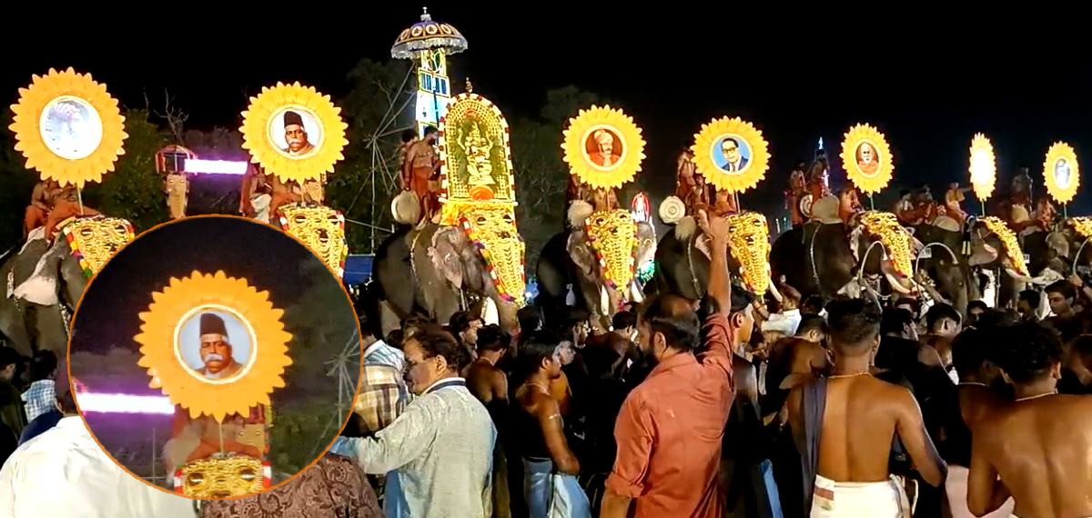 നവോത്ഥാന നായകരുടെ ചിത്രത്തിന് ഒപ്പമാണ് ഹെഡ്ഗേവാറിൻ്റെ ചിത്രം കുടമാറ്റത്തിൽ ഉയർന്നത്. ശ്രീനാരായണ ഗുരു, ബി ആർ അംബേദ്കർ, അയ്യങ്കാളി തുടങ്ങിയവരുടെ ചിത്രത്തിനൊപ്പമാണ് ആർഎസ്എസ് നേതാവിൻ്റെ ചിത്രവും കുടമാറ്റത്തിൽ ഇടംപിടിച്ചത്. സച്ചിൻ ടെൻഡുൽക്കറുടെ ചിത്രവും ശിവജിയുടെ ചിത്രവും കുടമാറ്റത്തിൽ ഇടം പിടിച്ചിരുന്നു.