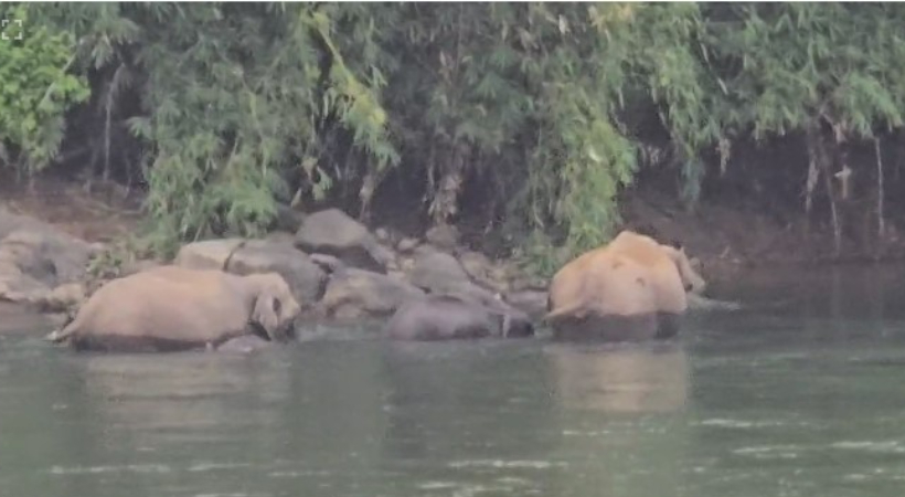 മഴക്ക് തെല്ലൊരു ശമനം ലഭിച്ച സമയത്താണ് കാട്ടാനക്കൂട്ടം കുട്ടമ്പുഴയാറ്റിൽ നീരാട്ടിനിറങ്ങിയത്. രണ്ട് വലിയ ആനകളും രണ്ട് കുട്ടിയാനകളുമാണ് സംഘത്തിലുള്ളത്.