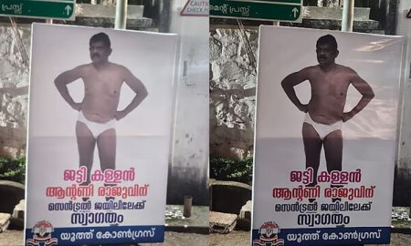 തിരുവനന്തപുരം: തൊണ്ടിമുതല് തിരിമറിക്കേസില് കോടതി ശിക്ഷിച്ചതോടെ, എംഎല്എയും മുന് മന്ത്രിയുമായിരുന്ന ആന്റണി രാജുവിനെ പരിഹസിച്ച് യൂത്ത് കോണ്ഗ്രസിന്റെ ഫ്ലെക്സ് ബോര്ഡ്. അടിവസ്ത്രത്തില് നില്ക്കുന്ന ചിത്രത്തിനൊപ്പം സെന്ട്രല് ജയിലിലേയ്ക്ക് സ്വാഗതം എന്നെഴുതിയ...