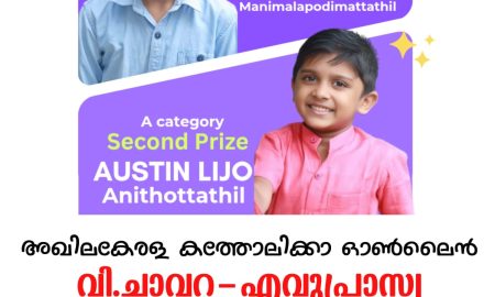പാലാ: അഖില കേരള കാത്തലിക് ഓൺലൈൻ സംഘടിപ്പിച്ച വി. ചാവറ,എവുപ്രാസ്യാ പ്രസംഗ മത്സരത്തിൽ പാലാ സെൻ്റ് മേരീസ് എൽ.പി.സ്കൂളിന് മികച്ച വിജയം നേടി.ബി.വിഭാഗത്തിൽ റയാൻ സുനിൽ ഒന്നാം സ്ഥാനം നേടി...