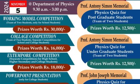പാലാ സെൻറ് തോമസ് കോളേജിലെ ഫിസിക്സ് ഡിപ്പാർട്ട്മെന്റിന്റെ ആഭിമുഖ്യത്തിൽ സ്കൂൾ, ഹയർ സെക്കഡറി സ്കൂൾ, കോളേജ് വിദ്യാർത്ഥികൾക്കായി അഖില കേരള അടിസ്ഥാനത്തിൽ ,ഫിസിക്കാ- 3.0 , അക്കാദമിക് മത്സരങ്ങൾ സംഘടിപ്പിക്കുന്നു....