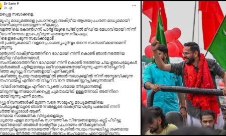 ഫെയ്സ്ബുക്കില് പങ്കുവച്ച കുറിപ്പിലാണ് സിപിഎമ്മിനേയും മുഖ്യമന്ത്രി പിണറായി വിജയനേയും വിമര്ശിച്ചു കൊണ്ടുള്ള പഴയ ഇടപെടലുകള് പൂര്ണ്ണമായും ഓഴിവാക്കേണ്ടതായിരുന്നുവെന്ന തിരിച്ചറിവ് ഉണ്ടായതായി പി സരിന് വ്യക്തമാക്കിയിരിക്കുന്നത്. കോണ്ഗ്രസ് രാഷ്ട്രീയത്തിന്റെ ഭാഗമായി...