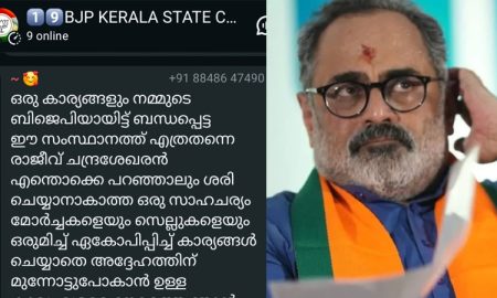 ബിജെപി സംസ്ഥാന സെല്ലുകളുടെ ചുമതലക്കാരുടെ ഗ്രൂപ്പില് സംസ്ഥാന അധ്യക്ഷന് രാജീവ് ചന്ദ്രശേഖരനെതിരെ വീണ്ടും രൂക്ഷ വിമര്ശനം. പാര്ട്ടിയെ സംബന്ധിച്ച് ഒരു കാര്യത്തിലും കൃത്യതയില്ലാത്ത നേതൃത്വമാണ് ഇപ്പോഴുള്ളതെന്ന് അംഗങ്ങള് വാട്സാപ്പിലൂടെ തുറന്നടിച്ചു....