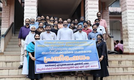 കടനാട്: വിദ്യാഭ്യാസ മേഖലയിലെ ഭിന്നശേഷി നിയമന ഉത്തരവിന്റെ പേരിൽ അധ്യാപക- അനധ്യാപക നിയമനങ്ങൾ തടസ്സപ്പെടുത്തുന്ന സർക്കാരിന്റെ അനിതിക്കെതിരെ കടനാട് സെന്റ്. സെബാസ്റ്റ്യൻസ് ഹയർ സെക്കൻഡറി സ്കൂൾ അധ്യാപകരുടെ നേതൃത്വത്തിൽ പ്രതിഷേധയോഗം...