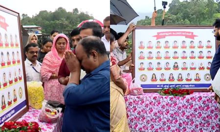 വയനാട്: മുണ്ടക്കൈ-ചൂരൽമല ഉരുൾപൊട്ടലിൽ ജീവൻ നഷ്ടമായ ചൂരൽമല സ്കൂളിലെ കുഞ്ഞുങ്ങളുടെ ഓർമയിൽ അധ്യാപകർ. ബെയ്ലി പാലത്തിന് സമീപം ഒരുക്കിയ, ദുരന്തത്തിൽ മരിച്ച കുട്ടികളുടെ ചിത്രങ്ങൾക്ക് മുന്നിൽ അധ്യാപകർ അടക്കമുള്ളവർ പുഷ്പാഞ്ജലി...