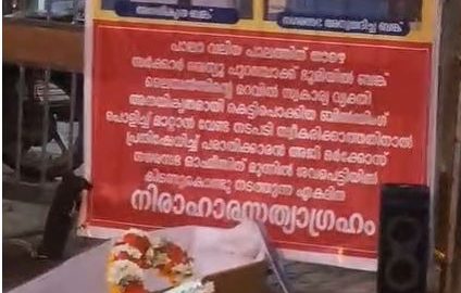 പാലാ :അന്യായമായി റവന്യൂ സ്ഥലത്ത് കെട്ടിട നിർമ്മാണം ഒഴിപ്പിക്കാത്തതിൽ പ്രതിഷേധിച്ചു അജി മാർക്കോസ് നടത്തുന്ന സമരം ഇന്നാണ് .രാവിലെ തന്നെ തയാറെടുപ്പുകളുമായി അജി മാർക്കോസ് രംഗത്തെത്തി.നഗരകവാടത്തിങ്കൽ ശവപ്പെട്ടിയും റീത്തും ആവശ്യങ്ങൾ...