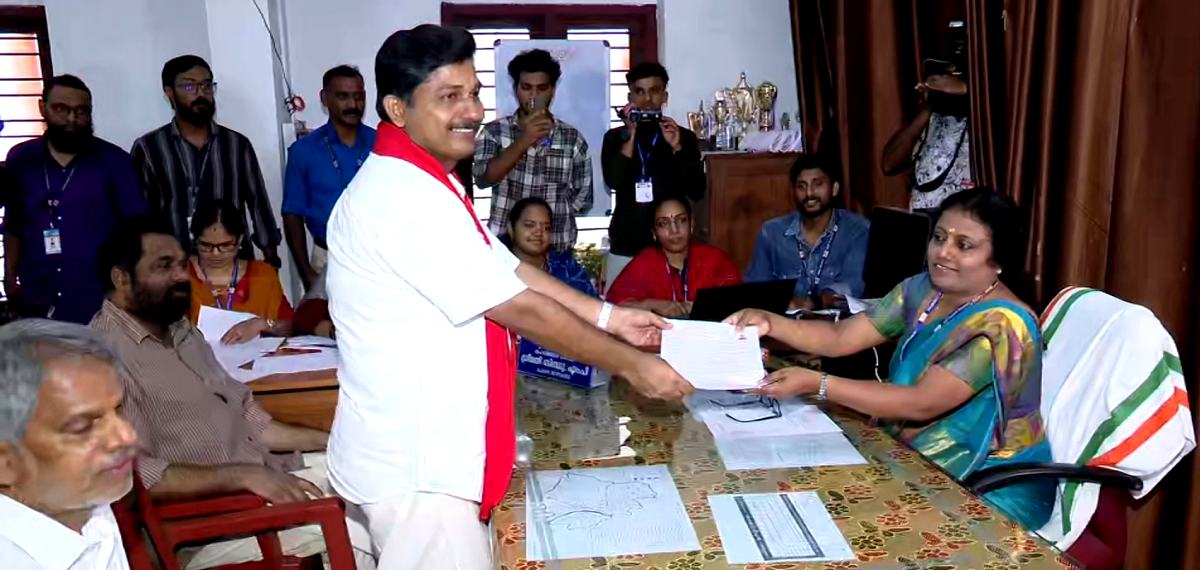 മലപ്പുറം: നിലമ്പൂർ ഉപതിരഞ്ഞെടുപ്പിൽ എൽഡിഎഫ് സ്ഥാനാർത്ഥി എം സ്വരാജ് നാമനിർദ്ദേശ പത്രിക സമർപ്പിച്ചു.