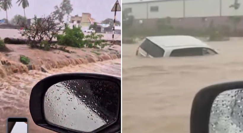 വീഡിയോയിൽ, ചില യാത്രക്കാർ റോഡ് ഡിവൈഡറിൽ കുടുങ്ങിക്കിടക്കുന്നതും മറ്റുള്ളവർ വാഹനങ്ങളിൽ വെള്ളക്കെട്ടിലൂടെ സഞ്ചരിക്കാൻ ശ്രമിക്കുന്നതും നിരവധി കാറുകൾ ഒഴുകിപ്പോയതായും കാണാം.