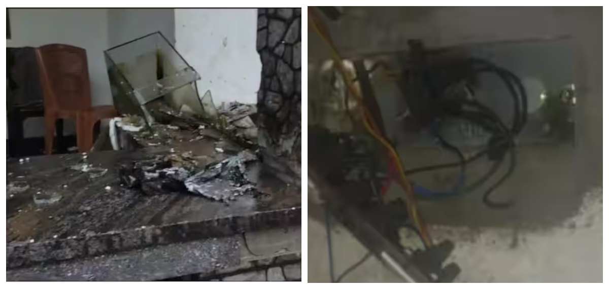 സിറ്റൗട്ടിൽ ഇരിക്കുകയായിരുന്ന സദാനന്ദനും സുഹൃത്തും എഴുന്നേറ്റ ഉടനെയാണ് വീട്ടിലെ തൂണിന് താഴെയായി മിന്നലേറ്റത്. തൂണിൻ്റെ അടിഭാഗത്തെ ടൈലുകൾ ചിതറിത്തെറിച്ചു. വയറിങ് പൂർണ്ണമായും കത്തി നശിച്ചു. വീട്ടിലെ അക്വോറിയം പൊട്ടിത്തെറിക്കുകയും ചെയ്തു. ഇടിമിന്നലിനെ തുടർന്ന് നാരായണൻ്റെ വീടിന്റെ ജനൽ പാളികൾ പൊട്ടിത്തകർന്നു. വീടിന്റെ ചുമരിൽ വിള്ളലേറ്റിട്ടുണ്ട്. വൈദ്യുതി ഉപകരണവും വയറിങ്ങും നശിച്ചുപോവുകയും ചെയ്തു.
