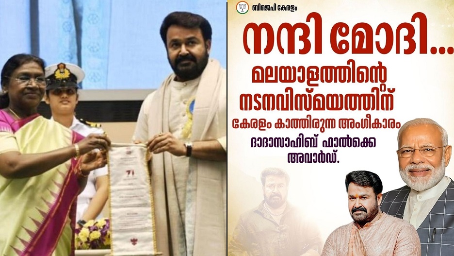 സിനിമാ മേഖലയിലെ രാജ്യത്തെ പരമോന്നത ബഹുമതിയായ ദാദ സാഹെബ് ഫാല്ക്കെ പുരസ്കാരം നടന് മോഹന്ലാല് ഏറ്റുവാങ്ങിയതിനു പിന്നാലെ മോദിക്ക് നന്ദി പറഞ്ഞുള്ള കേരള ബിജെപിയുടെ പോസ്റ്ററിനെതിരെ വിമർശനം.