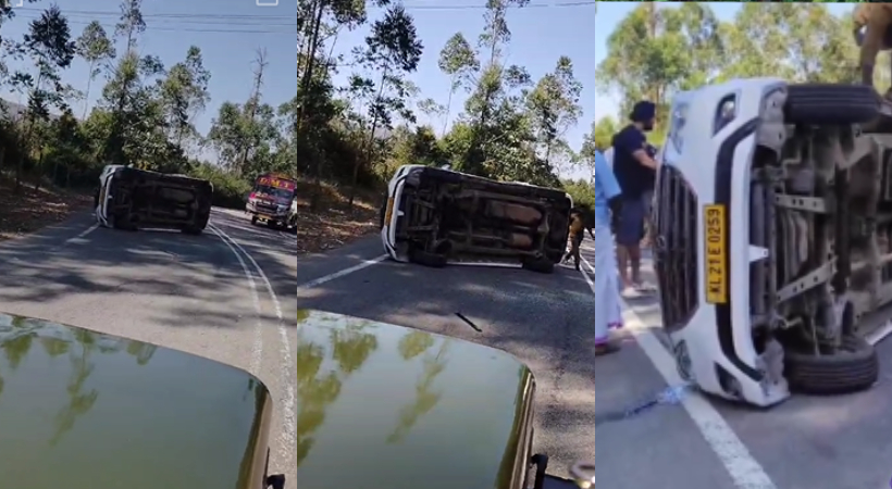 കാർ റോഡിൽ തലകീഴായി മറിഞ്ഞു. വിനോദ സഞ്ചാരികൾ കാര്യമായ പരിക്കുകൾ ഇല്ലാതെ രക്ഷപ്പെട്ടു. ആർആർറ്റി സംഘമെത്തി കാട്ടാനയെ തുരത്തി. പ്രദേശത്ത് ഉണ്ടായിരുന്ന പശുവിനെയും കാട്ടാന ചവിട്ടി കൊന്നു.