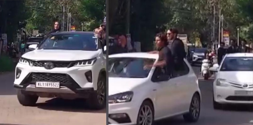 ഓണാഘോഷത്തിനിടെ കാറിന്റെ മുകളിലും ഡോറിലും ഇരുന്ന് സാഹസിക യാത്ര; കേസെടുത്തു