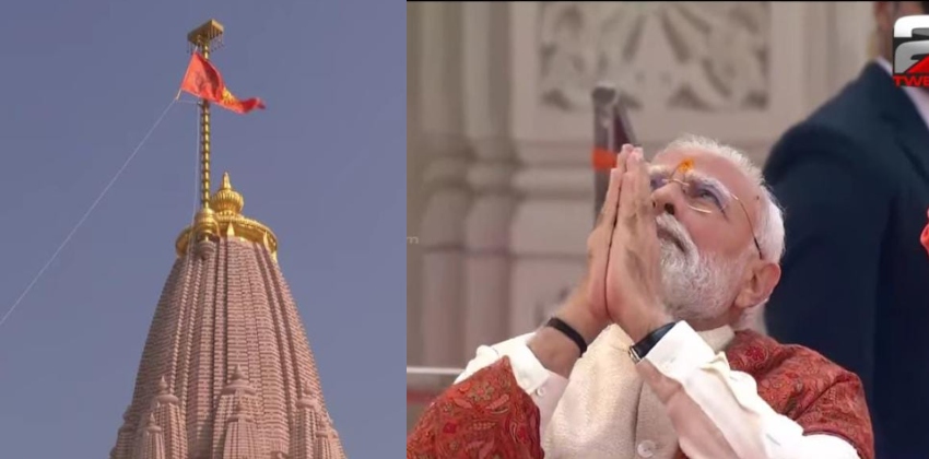 അയോധ്യയിലെ രാമക്ഷേത്ര നിര്മ്മാണം പൂര്ത്തീകരിച്ചതിന്റെ പ്രതീകമായ ധര്മ്മ ധ്വജാരോഹണം നടന്നു.