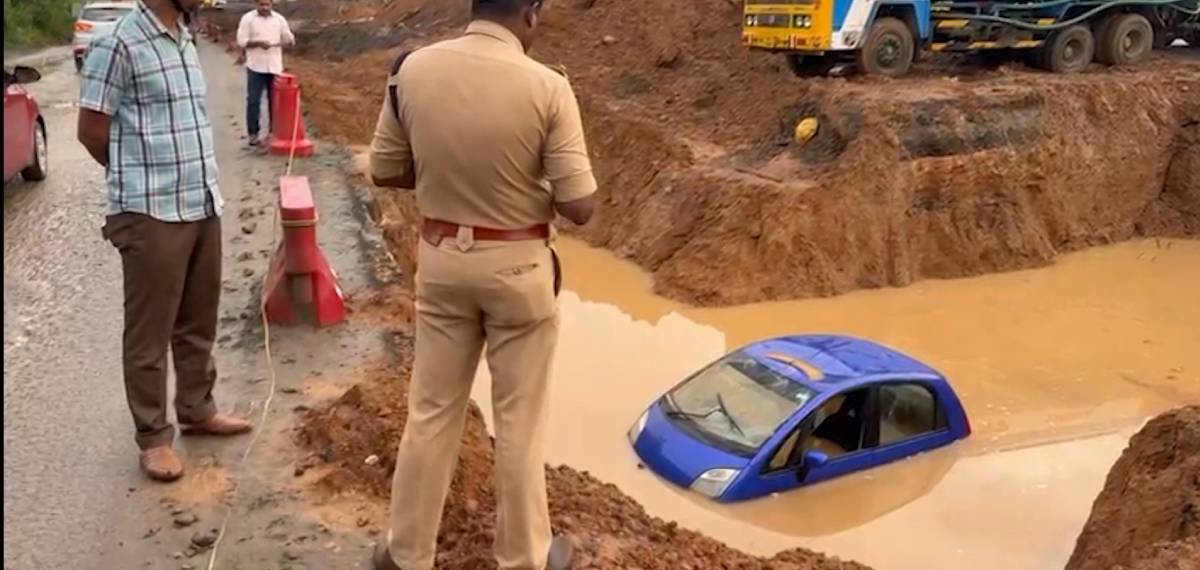 തൃശൂര്: ദേശീയപാതയില് നിര്മാണം നടക്കുന്ന മുരിങ്ങൂരില് കാര് അപകടത്തില്പ്പെട്ടു. പുരിങ്ങോരില് അടിപ്പാത നിര്മ്മിക്കാന് എടുത്ത കുഴിയിലാണ് കാര് പെട്ടത്.