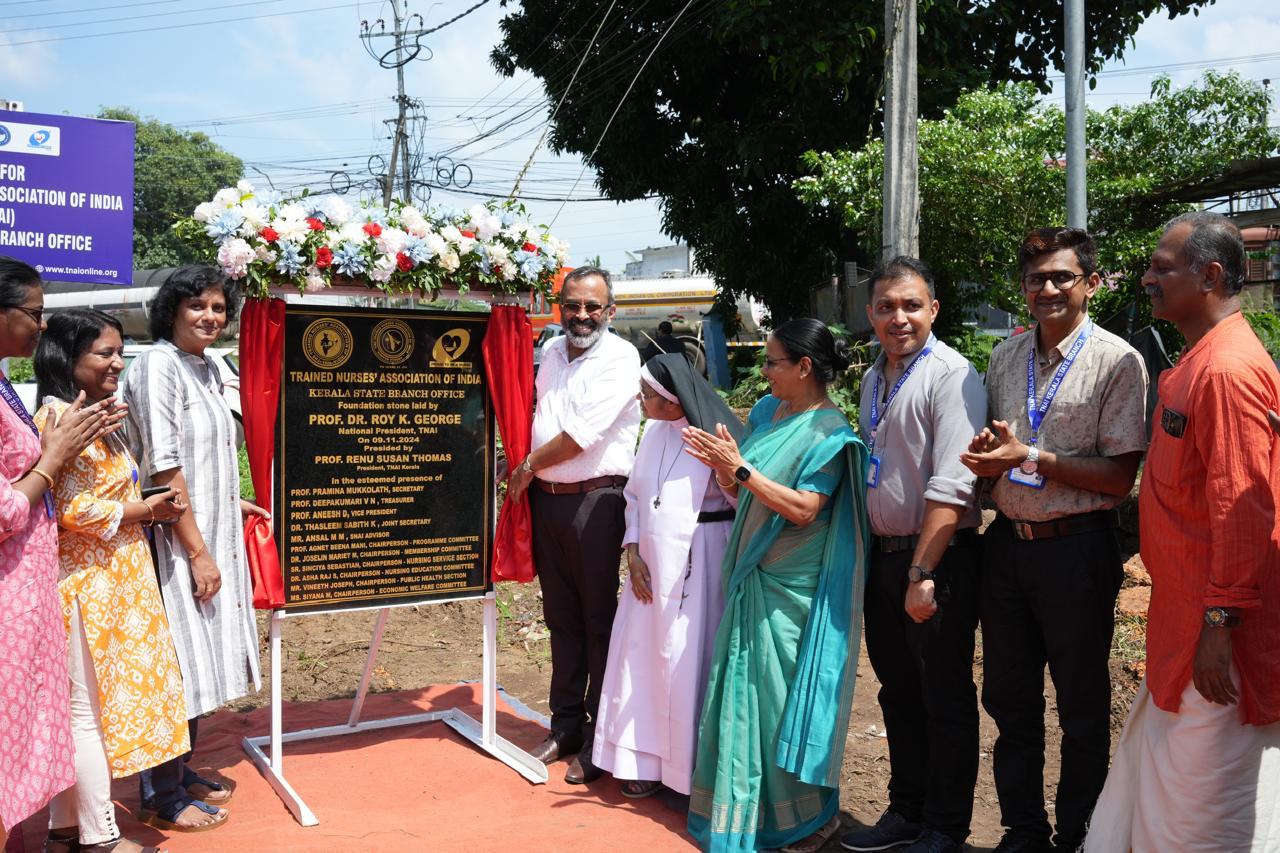 ട്രൈൻഡ് നഴ്സസ് അസോസിയേഷൻ ഓഫ് ഇന്ത്യ ദേശീയ പ്രസിഡന്റ് പ്രൊഫ.ഡോ .റോയ് കെ ജോർജ് ശിലാസ്ഥാപനകർമ്മം നിർവ്വഹിച്ചു . പ്രൊഫ .രേണു സൂസൻ തോമസ് ,സംസ്ഥാന പ്രസിഡന്റ് ,ട്രൈൻഡ് നഴ്സസ് അസോസിയേഷൻ ഓഫ് ഇന്ത്യ പ്രസ്തുത ചടങ്ങിൽ അധ്യക്ഷത വഹിച്ചു .പ്രൊഫ .പ്രമിന മുക്കോളത്ത് സംസ്ഥാന സെക്രട്ടറി , ട്രൈൻഡ് നഴ്സസ് അസോസിയേഷൻ ഓഫ് ഇന്ത്യ .പ്രൊഫ വത്സാ കെ പണിക്കർ ,മുൻ സംസ്ഥാന സെക്രട്ടറി,സിസ്റ്റർ തോമസ് സീന മുൻ സംസ്ഥാന സെക്രട്ടറി , ഡോ .ജോസ്ലിൻ മാരിയറ്റ് ,ചെയർപേഴ്സൺ ,മെമ്പർഷിപ്പ് കമ്മിറ്റി ,പ്രൊഫ .ദീപാ കുമാരി വി എൻ ,ട്രഷറർ ,ഡോ .തസ്ലീം സാബിത്ത് കെ ,ജോയിന്റ് സെക്രട്ടറി, ശ്രീമതി .സിയാന എം ,ചെയർപേഴ്സൺ സോഷ്യോ എക്കണോമിക്ക് കമ്മിറ്റി , ,ശ്രീ .അൻസൽ എം എം എസ് എൻ എ അഡ്വൈസർ തുടങ്ങിയ അസോസിയേഷൻ ഭാരവാഹികൾ ആശംസകളർപ്പിച്ചു.