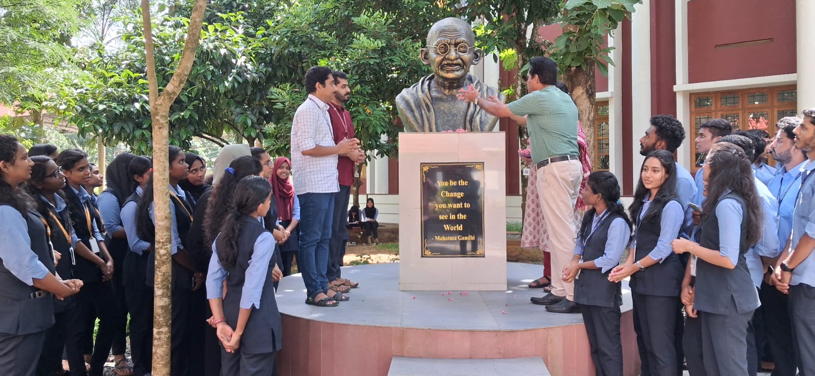 ഗാന്ധി വന്ദനം പരിപാടിയുടെ ഉദ്ഘാടനം കോളേജ് പ്രിൻസിപ്പാൾ പ്രൊഫ. ഡോ. സിബി ജോസഫ് നിർവഹിച്ചു. പൊളിറ്റിക്സ് വിഭാഗം മേധാവി ഡോ. തോമസ് പുളിക്കൽ, പൊളിറ്റിക്സ് വിഭാഗം അദ്ധ്യാപകരായ സിറിൽ സൈമൺ, അനിറ്റ് ടോം തുടങ്ങിയവരും ചടങ്ങിൽ സംസാരിച്ചു.