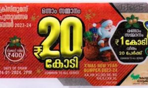 ക്രിസ്തുമസ് – നവവത്സര ബമ്പർ ലോട്ടറി ഫലം പ്രഖ്യാപിച്ചു. XD 387132 എന്ന നമ്പറിനാണ് ഒന്നാം സമ്മാനം. 20 കോടി രൂപയാണ് ഒന്നാം സമ്മാനം. രണ്ടാം സമ്മാനം ഒരു കോടി...