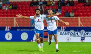 ഹൈദരാബാദ്: ഇന്ന് ബാലയോഗി അത് ലറ്റിക് സ്റ്റേഡിയത്തിൽ നടന്ന സന്തോഷ് ട്രോഫി സെമി ഫൈനലിൽ മണിപ്പുരിനെ ഒന്നിനെതിരെ അഞ്ച് ഗോളുകൾക്ക് പരാജയപ്പെട്ടുത്തി കേരളം സന്തോഷ് ട്രോഫി ഫൈനലിൽ പ്രവേശിച്ചു....