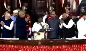 ഭരണഘടനാ ദിനത്തിൽ പാർലമെൻ്റിൻ്റെ സംയുക്ത സമ്മേളനത്തെ അഭിസംബോധന ചെയ്യുന്നതിനിടെ രാഹുൽ ഗാന്ധി രാഷ്ട്രപതി ദ്രൗപതി മുർമുവിനെ അഭിവാദ്യം ചെയ്യാതെ പരിഹസിച്ചുവെന്ന ആക്ഷേപവുമായി ബിജെപി രംഗത്ത്. ഭരണഘടനാ വാർഷികാഘോഷ ചടങ്ങിൽ രാഷ്ട്രപതിയുടെ...