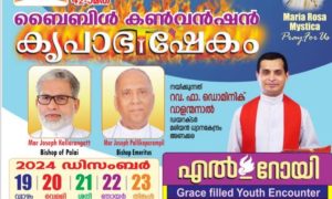 പാലാ: പാലാ രൂപത പ്ലാറ്റിനം ജൂബിലി വർഷത്തിൽ നടക്കുന്ന 42-ാമത് ബൈബിൾകൺവെൻഷൻ ഡിസംബർ 19 വ്യാഴാഴ്ച ആരംഭിക്കും. ഈശോയുടെ തിരുപ്പിറവിയ്ക്ക് ഒരുക്കമായി നടത്തുന്ന ബൈബിൾ കൺവെൻഷൻ പാലാ രൂപതയുടെ ഏറ്റവും...