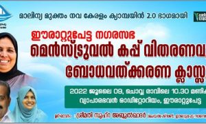 ഈരാറ്റുപേട്ട : ആർത്തവ ശുചിത്വത്തിൽ പ്രകൃതി സൗഹൃദമായി മാറാൻ മാലിന്യ മുക്തം നവ കേരളം 2.0 ക്യാമ്പയിൻ ഭാഗമായി ഈരാറ്റുപേട്ട നഗരസഭയുടെ പദ്ധതി ആരംഭിച്ചു. ഇതിന്റെ ആദ്യഘട്ട ഭാഗമായി...