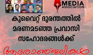 കോട്ടയം: കുവൈറ്റിലെ മംഗാഫിലെ തൊഴിലാളി ക്യാമ്പിൽ ഉണ്ടായ തീപിടുത്തത്തിൽ മരിച്ച സഹോദരങ്ങൾക്ക് ആദരാഞ്ജലികളർപ്പിച്ച് മലയാളം ഓൺലൈൻ മീഡിയാ അസോസിയേഷൻ. ഇന്നലെ നടന്ന തീപിടുത്തത്തിൽ അവസാന കണക്ക് ലഭിക്കുമ്പോൾ, 49...