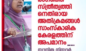 തിരുവനന്തപുരം: ചലച്ചിത്ര മേഖലയിലെ സ്ത്രീത്വത്തിനെതിരായ അതിക്രമങ്ങള് സംബന്ധിച്ച് ഓരോ ദിവസവും പുറത്തുവരുന്ന വാര്ത്തകള് സാംസ്കാരിക കേരളത്തിന് അപമാനമാണെന്ന് വിമന് ഇന്ത്യാ മൂവ്മെന്റ് സംസ്ഥാന പ്രസിഡന്റ് സുനിത നിസാര്. സ്ത്രീകളെ...