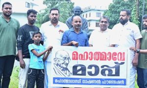 പാലാ: രാഷ്ട്രപിതാവ് മഹാത്മാഗാന്ധിയെക്കുറിച്ചുള്ള പ്രധാനമന്ത്രി നരേന്ദ്രമോദിയുടെ പരാമർശത്തെ അപലപിച്ച് മഹാത്മാഗാന്ധി നാഷണൽ ഫൗണ്ടേഷൻ്റെ ആഭിമുഖ്യത്തിൽ മൂന്നാനിയിലുള്ള ഗാന്ധിസ്ക്വയറിൽ പ്രതിഷേധമുയർത്തി. പ്രതിഷേധം ഫൗണ്ടേഷൻ ചെയർമാൻ എബി ജെ ജോസ് ഉദ്ഘാടനം...