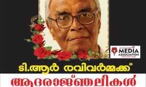 തിരുവനന്തപുരം : മുതിർന്ന മാധ്യമ പ്രവർത്തകനും, മലയാള മനോരമ കർഷക ശ്രീ മുൻ എഡിറ്റർ ഇൻ – ചാർജും കേന്ദ്ര കൃഷിവകുപ്പു മുൻ ജോയിന്റ് ഡയറക്ടറുമായ ടി.ആർ.രവിവർമ്മയുടെ നിര്യാണത്തിൽ...