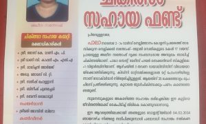 പാലാ നഗരസഭ രണ്ടാം വാർഡിൽ മുണ്ടുപാലത്ത് ഓട്ടോ ഓടിച്ച് ഉപജീവനം നടത്തിവന്നിരുന്ന നെല്ലിക്കൽ സന്തോഷിൻ്റെ മകൾ പതിനൊന്നാം ക്ലാസ്സിൽ പഠിക്കുന്ന അലീനാ സന്തോഷിൻ്റെ വ്യക്കമാറ്റിവയ്ക്കുന്നതിനും തുടർ ചികൽസയ്ക്കുമായി 25...