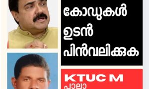 പാലാ :കേന്ദ്രസർക്കാർ നടപ്പിലാക്കിയ ലേബർ കോഡുകൾ ഉടൻ പിൻവലിക്കണമെന്ന് (കെ.ടി.യു.സി.എം) പാലാ നിയോജകമണ്ഡലം കമ്മറ്റി ആവശ്യപ്പെട്ടു. യോഗത്തിൽ പാലാ നിയോജകമണ്ഡലം പ്രസിഡണ്ടന്റ് ജോസുകുട്ടി പൂവേലിൽ അദ്ധ്യക്ഷത വഹിച്ച യോഗത്തിൽ സംസ്ഥാന...