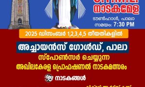 പാലാ ജൂബിലി തിരുനാളിനോട് അനുബന്ധിച്ച് C.Y.M.L. നടത്തുന്ന നാടകമേള ടൗൺഹാളിൽ ഡിസംബർ ഒന്നിന് ആരംഭിക്കും ., എല്ലാ ദിവസവും ഏഴിനായിരിക്കും നാടകം ആരംഭിക്കുന്നത് . ഡിസംബർ 1,2,3,4,5 തീയതികളിൽ അച്ചായൻസ്...