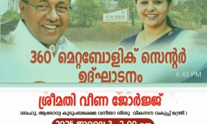 പാലാ: കെ.എം.മാണി സ്മാരക ഗവ.ജനറൽ ആശുപത്രിയില് ജീവിതശൈലി രോഗനിർണ്ണയത്തിനും ചികിത്സകൾക്കുമായി പുതിയ ചികിത്സാ വിഭാഗം ‘360 ഡിഗ്രി മെറ്റബോളിക് ഡിസീസ് മാനേജ്മെന്റ് സെന്റർ’ സ്ഥാപിതമായിട്ടുണ്ട് എന്ന് ആശുപത്രി മാനേജിംഗ് കമ്മിറ്റി...