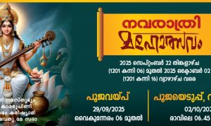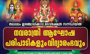 തലപ്പലം :-തലപ്പുലം ഇഞ്ചോലികാവ് ദേവീക്ഷേത്രത്തില് നവരാത്രി ആഘോഷവും വിദ്യാരംഭവും2025 സെപ്തംബര് 22 തിങ്കള് മുതല് ഒക്ടോബര് 2 വരെയുള്ള തിയതികളിൽ ആഘോഷിക്കുന്നു. ” 22-ാം തീയതി തിങ്കളാഴ്ച വൈകിട്ട് 7...