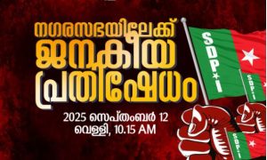 ഈരാറ്റുപേട്ട – ഈരാറ്റുപേട്ട നഗരസഭാ ഭരണസമിതിയുടെ അഴിമതിയ്ക്കും വികസനമുരടിപ്പിനും എതിരേ എസ്.ഡി.പി ഐ ഈരാറ്റുപേട്ട മുനിസിപ്പൽ കമ്മിറ്റി നേതൃതത്തിൽ നാളെ രാവിലെ പത്ത് മണിക്ക് നഗരസഭാ ഓഫിസിലേക്ക് ജനകീയ മാർച്ച്...