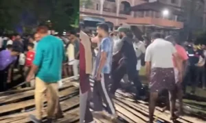 കോതമംഗലത്ത് അടിവാട് ഫുട്ബോൾ ടൂർണമെന്റിനിടെ ഗ്യാലറി തകർന്നുവീണ് അപകടം. നിരവധിപ്പേർക്ക് പരിക്കേറ്റു. ഇവരെ ആശുപത്രിയിൽ പ്രവേശിപ്പിച്ചു. താല്ക്കാലികമായി നിർമ്മിച്ച ഗ്യാലറി ഒരു വശത്തേക്ക് വീഴുകയായിരുന്നു. നാലായിരത്തോളം പേരാണ് മത്സരം കാണാനെത്തിയത്....